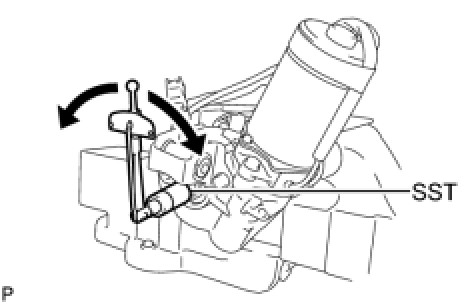 (b) Using SST, turn the main shaft and measure the preload.