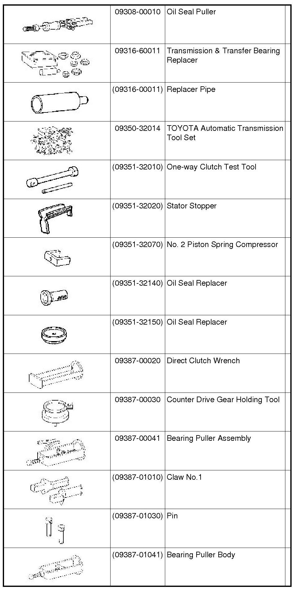 PREPARATION: U241E AUTOMATIC TRANSAXLE: SST