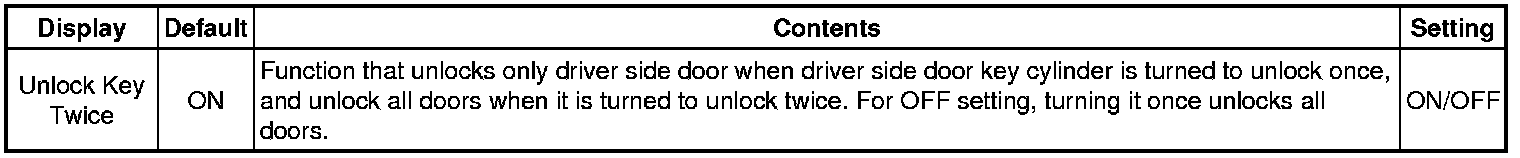 DOOR LOCK: POWER DOOR LOCK CONTROL SYSTEM: CUSTOMIZE PARAMETERS