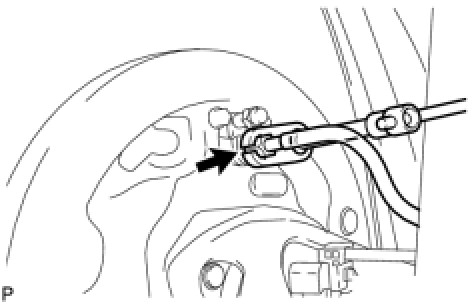 (f) Using needle-nose pliers, separate the parking brake cable.