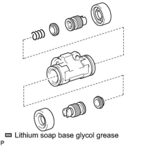 (a) Apply lithium soap base glycol grease to 2 new wheel cylinder cups and the 2 pistons.