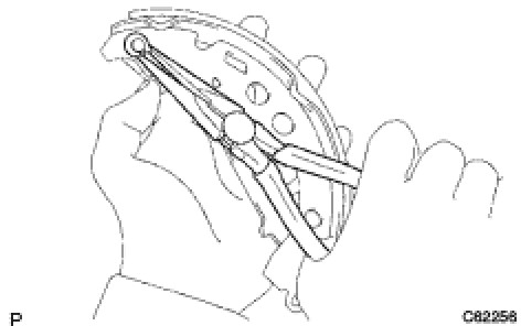 (a) Using needle-nose pliers, install the parking brake shoe lever with a new C-washer.