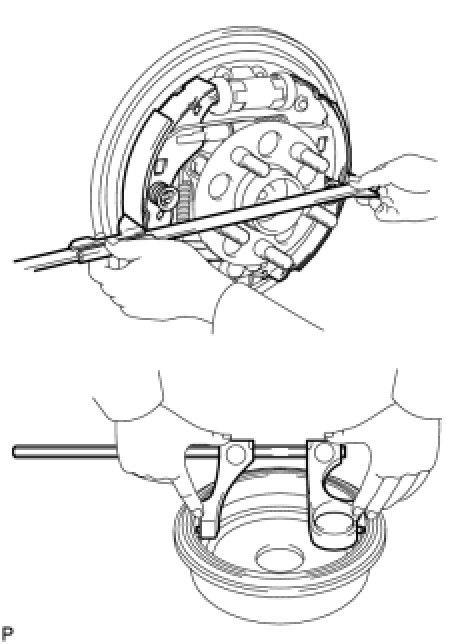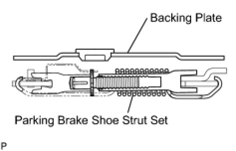 (e) Install the parking brake shoe strut set as shown in the illustration.