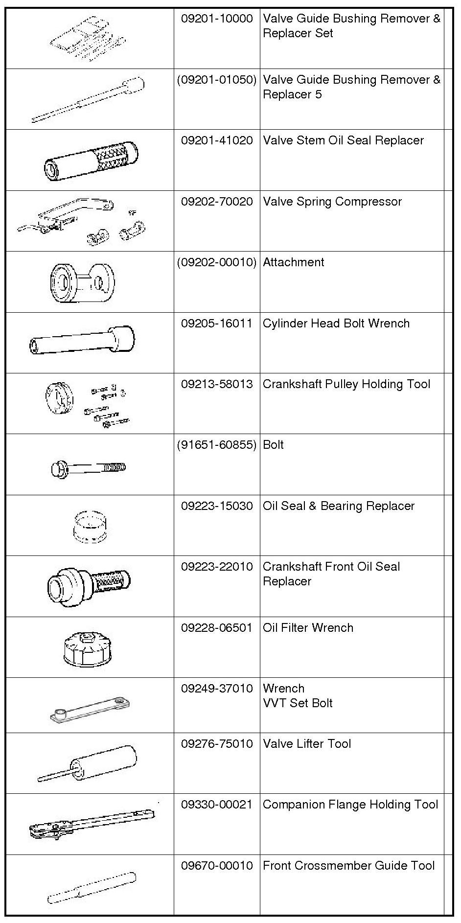 PREPARATION: 2ZR-FE ENGINE MECHANICAL: SST
