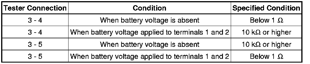 If the result is not as specified, replace the relay.