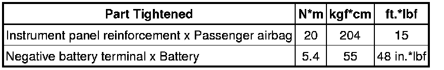 SERVICE SPECIFICATIONS: INSTRUMENT PANEL: TORQUE SPECIFICATIONS