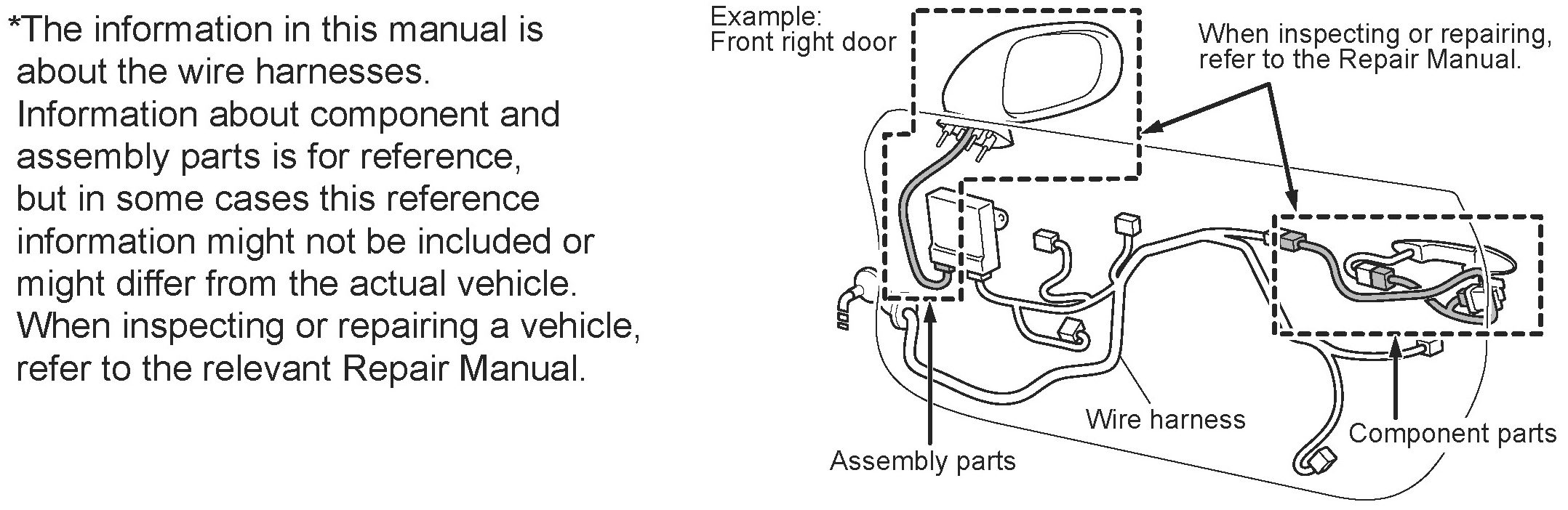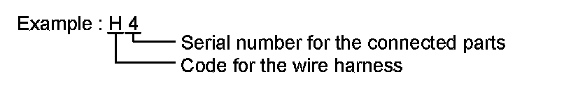 * The first character of the code indicates the alphabetical code allocated to the wire harness, and the second character indicates the serial number of the parts connected to the wire harness.