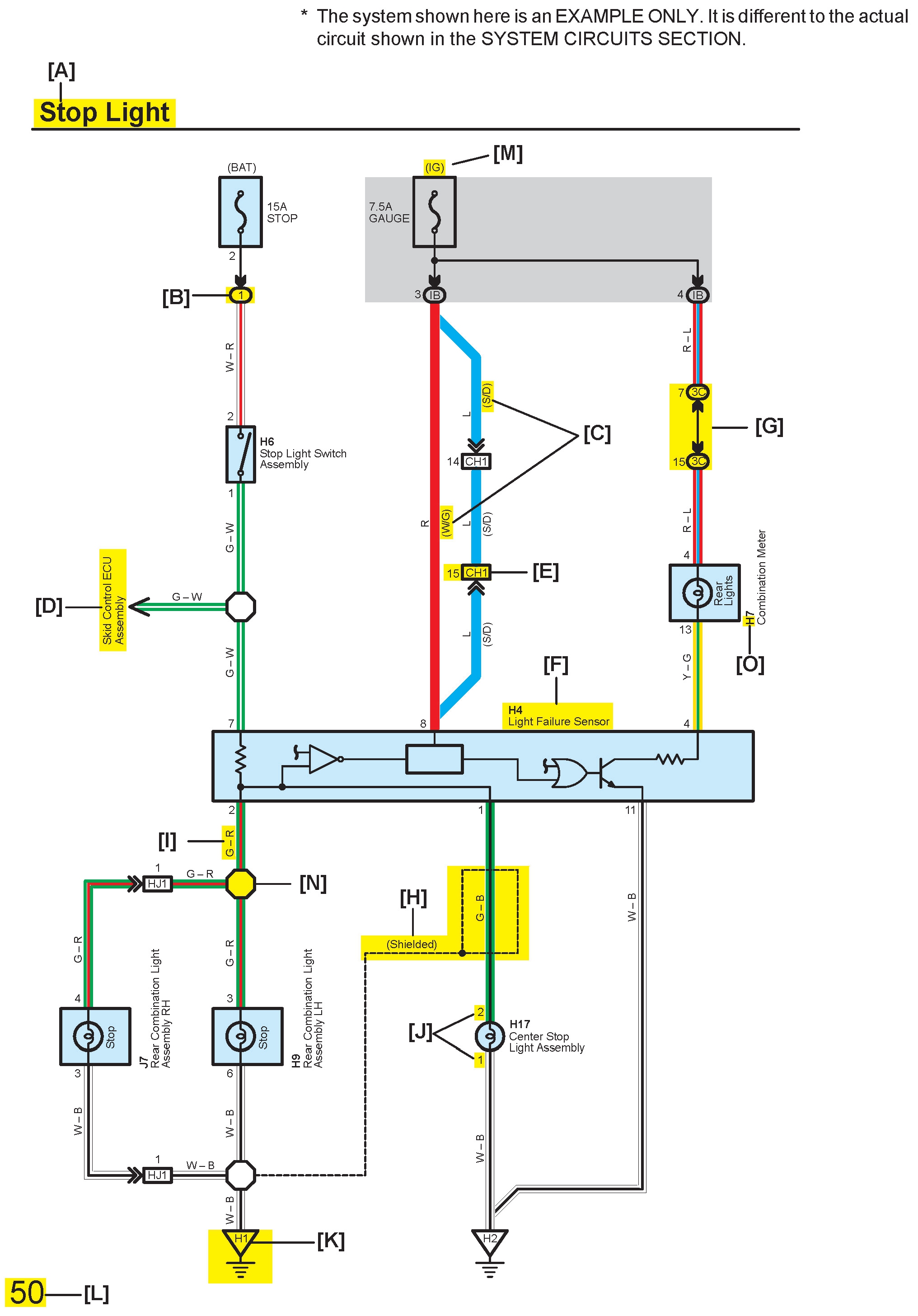 Example : Code "H" (Light Failure Sensor).
