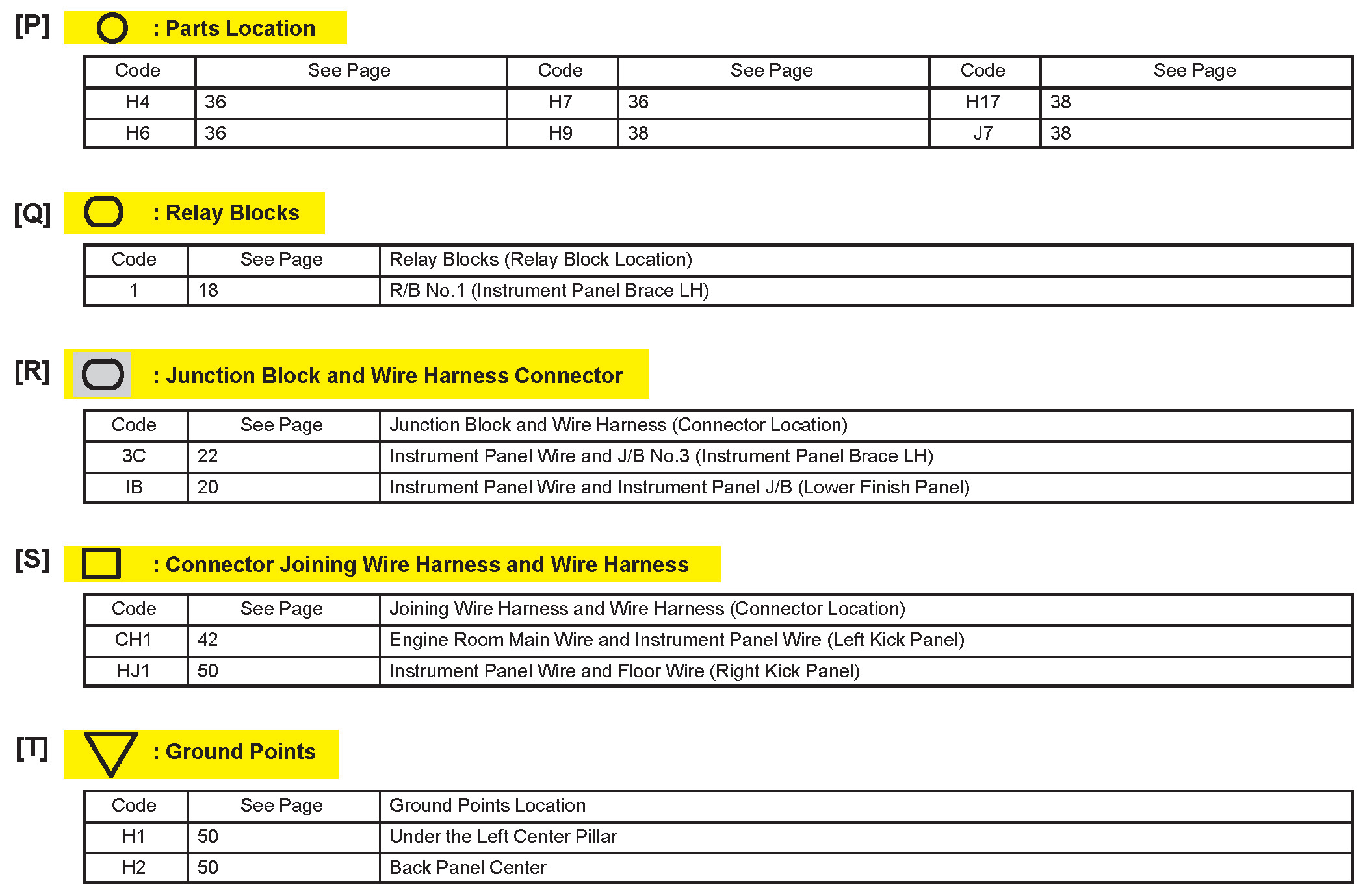 [P] : Indicates reference showing the parts locations in the system circuit on the vehicle.
