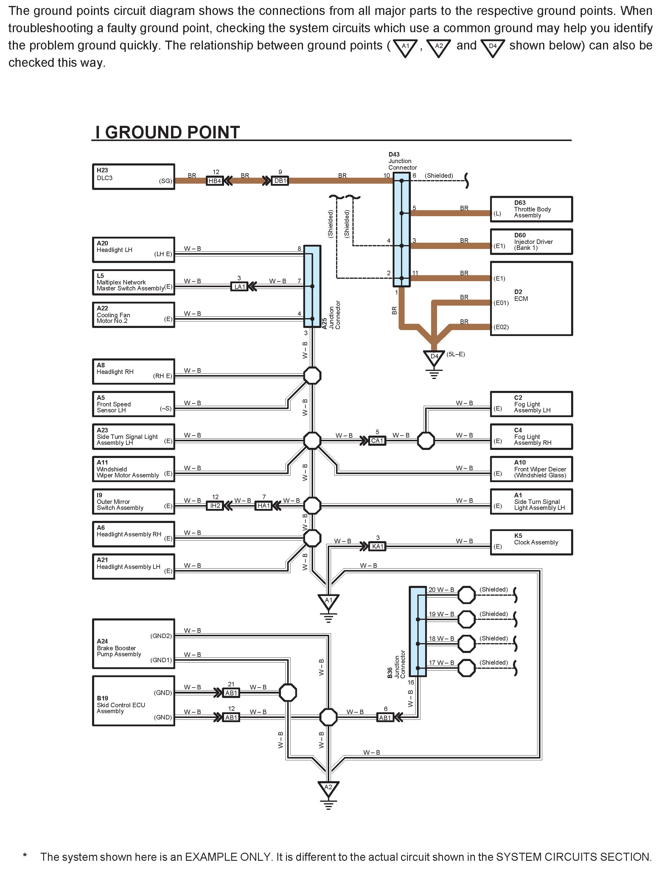 When the circuit operation is understood, begin troubleshooting of the problem circuit to isolate the cause. Use Relay Location and Electrical Wiring Routing sections to find each part, junction block and wiring harness connectors, wiring harness and wiring harness connectors and ground points of each system circuit. Internal wiring for each junction block is also provided for better understanding of connection within a junction block.