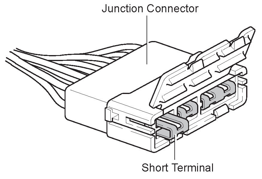 Junction connector include a short terminal which is connected to a number of wire harnesses. Always perform inspection with the short terminal installed.