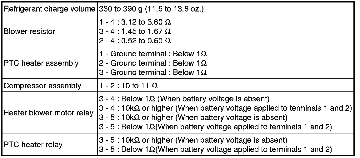 SERVICE SPECIFICATIONS: AIR CONDITIONING: SERVICE DATA