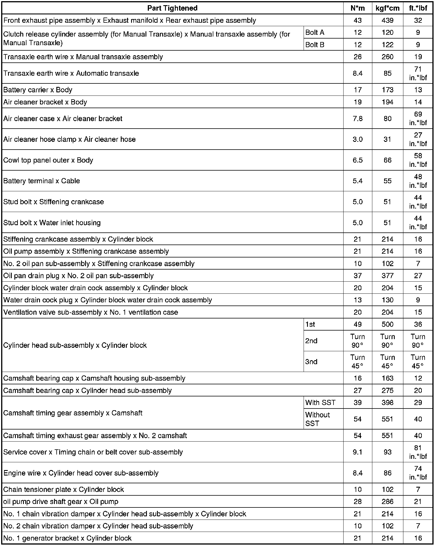 SERVICE SPECIFICATIONS: 2ZR-FE ENGINE MECHANICAL: TORQUE SPECIFICATIONS