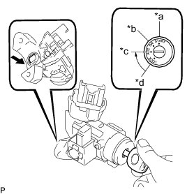 (b) Insert the key, turn the ignition switch to ACC and check that the steering lock function has been deactivated.