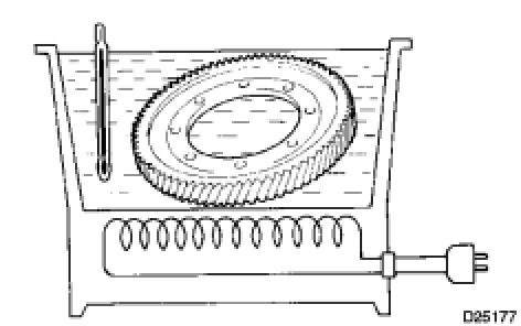 (a) Using Toyota Genuine ATF WS or equivalent and a heater, heat the front differential ring gear to 90 to 110°C (194 to 230°F).