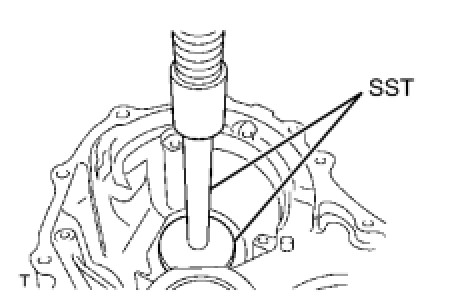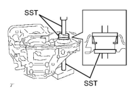 (b) Using SST and a press, install the tapered roller bearing to the transaxle housing.