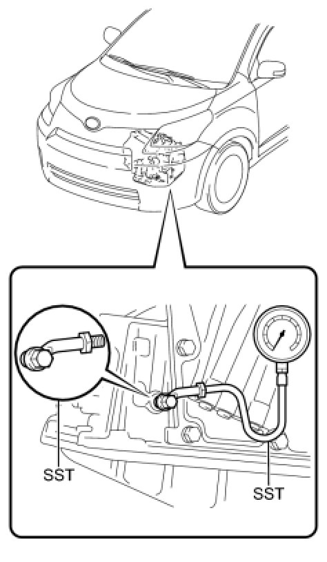 (2) Remove the test plug on the front left side of the transaxle case and connect SST.