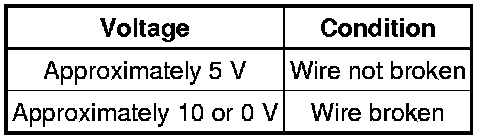 If there is approximately 10 V, the wire may be faulty between the center of the wire and the battery. If there is no voltage, the wire may be faulty between the center of the wire and the ground.