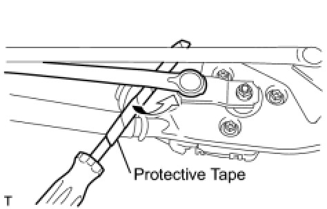 (a) Using a screwdriver with its tip wrapped in protective tape, disconnect the rod of the wiper link assembly from the crank arm pivot of the front wiper motor as shown in the illustration.