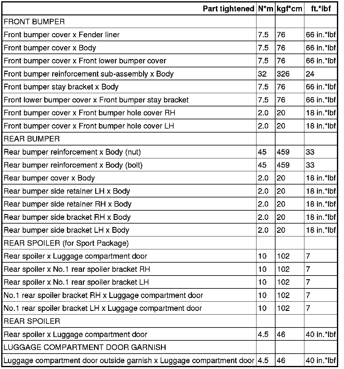 SPECIFICATIONS: EXTERIOR PANELS / TRIM: TORQUE SPECIFICATIONS; 2013 MY FR-S [03/2012 -]