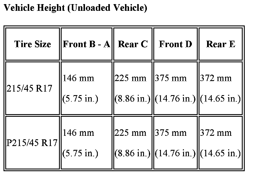 NOTICE: Perform the inspection while the vehicle is empty (without a spare tire, jack or tools on board, but with the fuel tank filled with fuel).