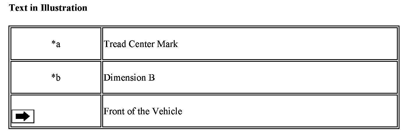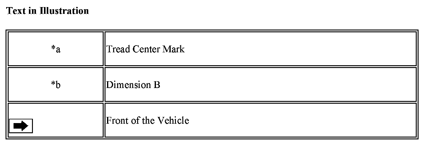 e. Put tread center marks on the rearmost points of the front wheels and measure the distance between the marks (dimension B).