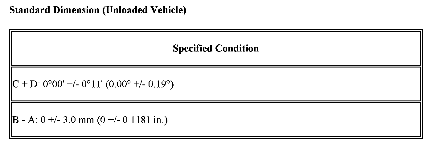 - The standard value shown here is a value that is used for adjusting the wheel alignment and does not indicate the height of an actual vehicle.