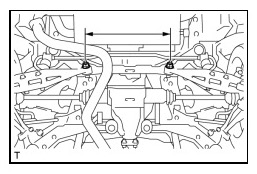 1. Measure the distance between the centers of the 2 installation bolts of the rear No. 2 suspension arm assembly.