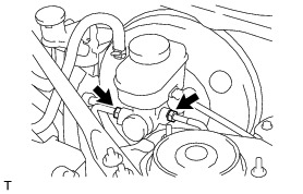 (a) Using a union nut wrench 12 mm, separate the 2 brake tubes from the master cylinder.