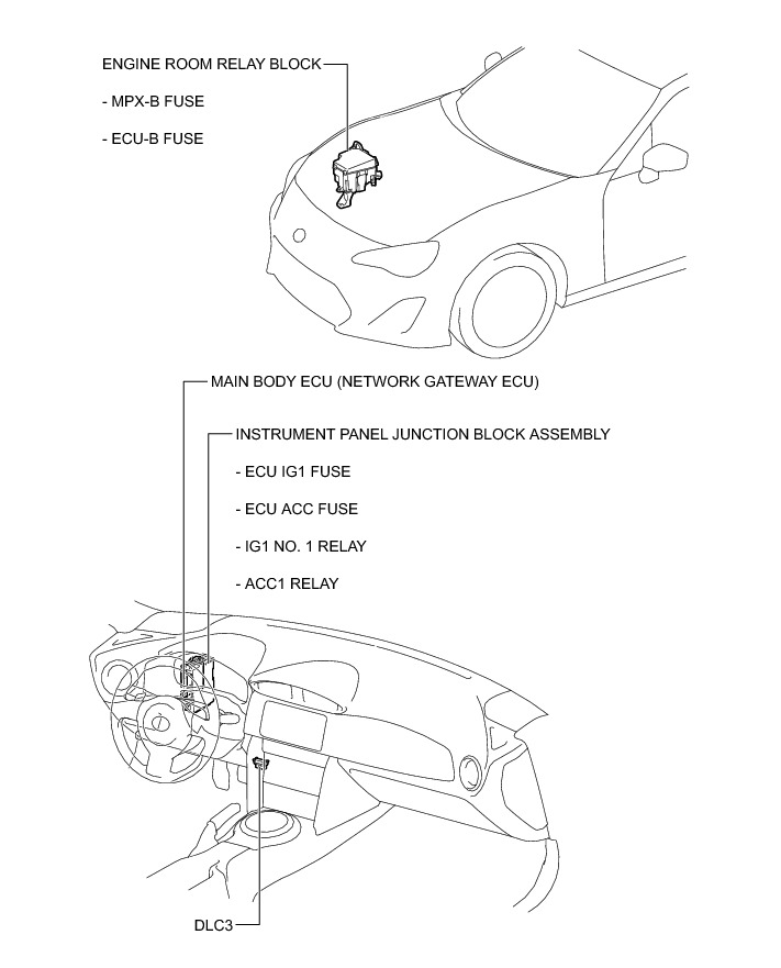 POWER DISTRIBUTION: ELECTRIC POWER CONTROL SYSTEM: PARTS LOCATION; 2013 MY FR-S [03/2012 -]