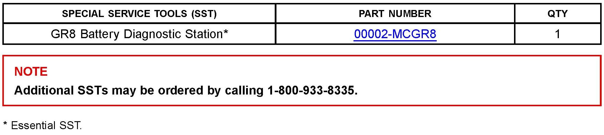 ^ For details on how to use the GR8 Battery Diagnostic Station, refer to the GR8 Instruction Manual located on the Technical Information System (TIS), Diagnostics - Tools & Equipment - Battery Diagnostics.