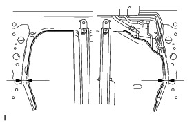 (e) Adjust the position of the fuel tank assembly to achieve the required difference in clearance between the left and right sides of the fuel tank assembly and the body.