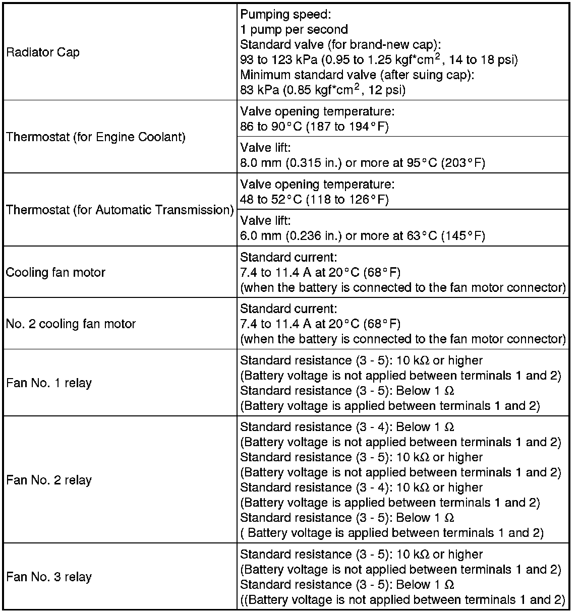 SPECIFICATIONS: FA20 COOLING: SERVICE DATA; 2013 MY FR-S [03/2012 -]