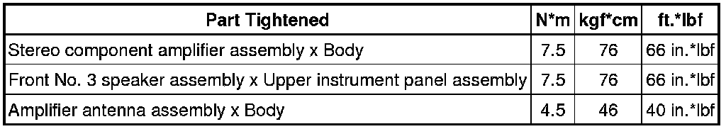 SPECIFICATIONS: AUDIO / VIDEO: TORQUE SPECIFICATIONS; 2013 MY FR-S [03/2012 -]