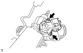 (a) Slide the unlock warning switch assembly and engage the 2 claws to install the unlock warning switch assembly to the steering column upper bracket assembly as shown in the illustration.