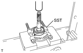 (b) Using SST and a press, remove the front input shaft bearing from the input shaft.