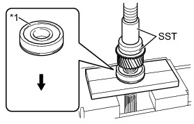 (a) Using SST and a press, as shown in the illustration, install a new front input shaft bearing to the input shaft.