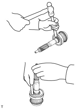 (c) Using a brass bar and a hammer, install a new front bearing shaft snap ring to the input shaft.