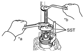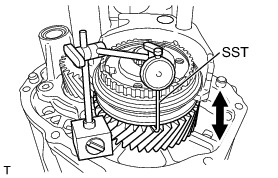 (a) Using SST and a dial indicator, measure the thrust clearance.