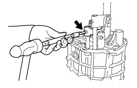 (b) Remove the No. 1 gear shift fork shaft and No.1 gear shift fork together.