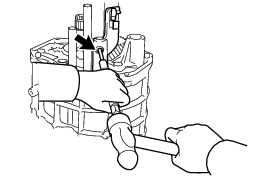 * Take care in order that the slotted spring pin does not fall inside through the gear shift fork shaft hole.