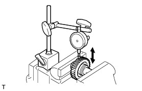 (a) Use a vice to secure the reverse idler gear shaft, and then use a dial indicator to measure the radial clearance.