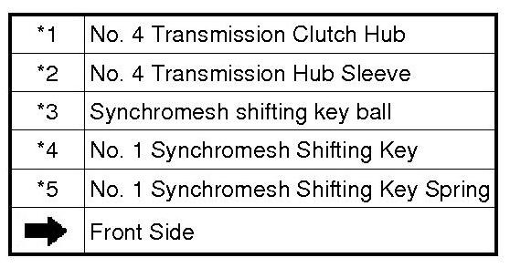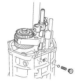 * Install the synchromesh shifting key ball while holding down the No. 1 synchromesh shifting key spring.