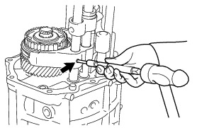(b) Using a brass bar and a hammer, install a new shaft snap ring to the counter shaft.