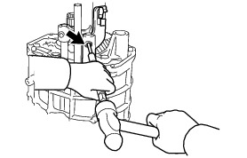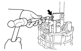 (b) Using a 5 mm pin punch and a hammer, install a new slotted spring pin to the No. 1 gear shift fork shaft.