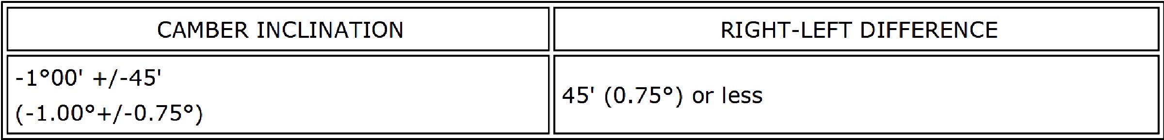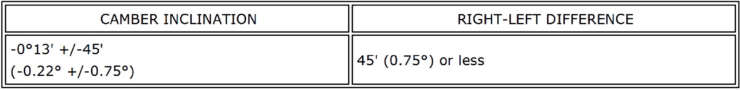 Standard Camber Inclination (Unloaded Vehicle):