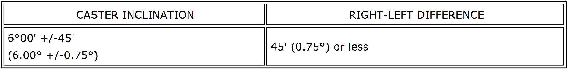 Standard Caster Inclination (Unloaded Vehicle):