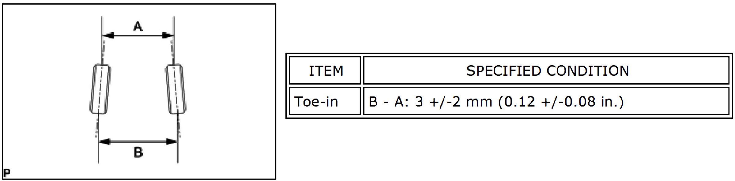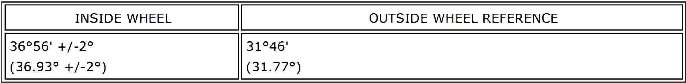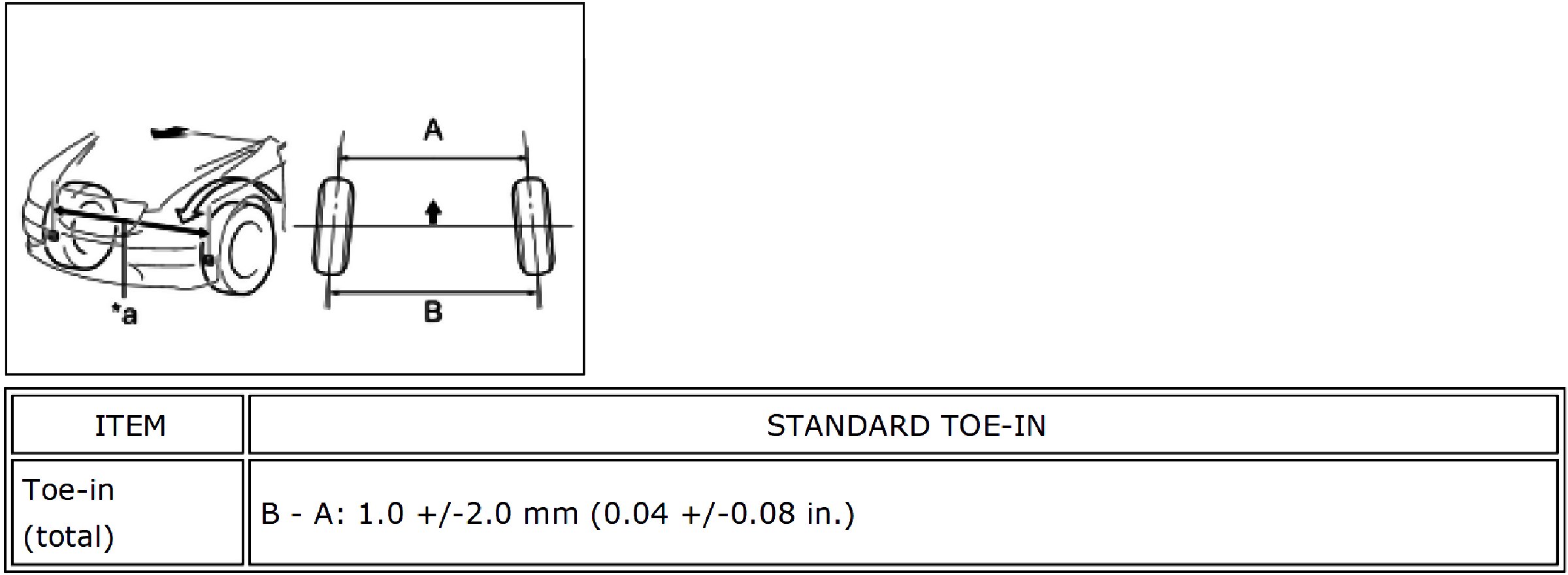 Standard Toe-in (Unloaded Vehicle):