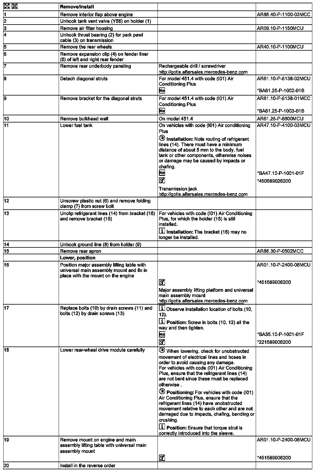 450 589 02 62 00, Removal assembly