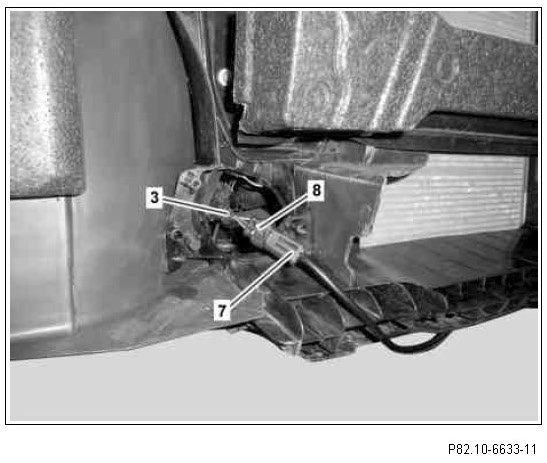 1 Connect connector (7) of daytime running lights control unit to coupling (8) of electrical wiring harness (3).